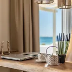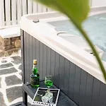 El establecimiento incluye una pequeña cocina equipada con nevera, un hervidor y cristalería para el autoservicio. El restaurante Petrino Beach Restaurant prepara comida mediterránea y se encuentra justo al lado del alojamiento. El establecimiento ofrece una estancia de nivel superior con terraza solárium y un jardín, además de lujos como un jacuzzi.